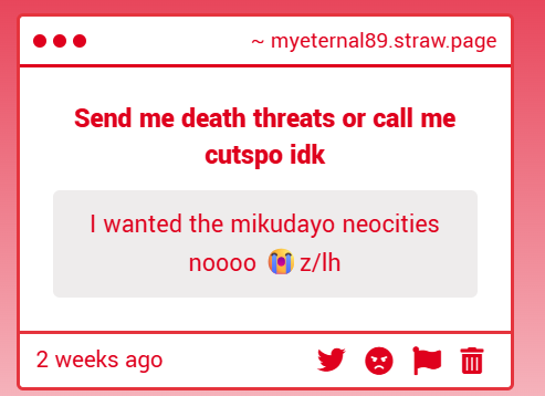 Hi there, anon! (i hope you will see this, haha) i don't use my neocities as much as i thought i would, so i'm totally willing to give you the url if you wish!! feel free to contact me on insta (@aureatw) or discord (@iwutm) so i can make sure it lands in your hands when i change my website's url! :]